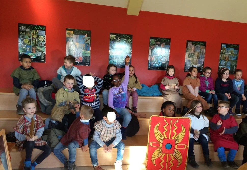 Dans le cadre d’un projet d’éveil, toute l’école s’est rendue à Malagne afin de découvrir la vie des Belges au temps des Gallo-Romains. Les enfants ont découvert les jeux, la cuisine, l’histoire de cette époque.
