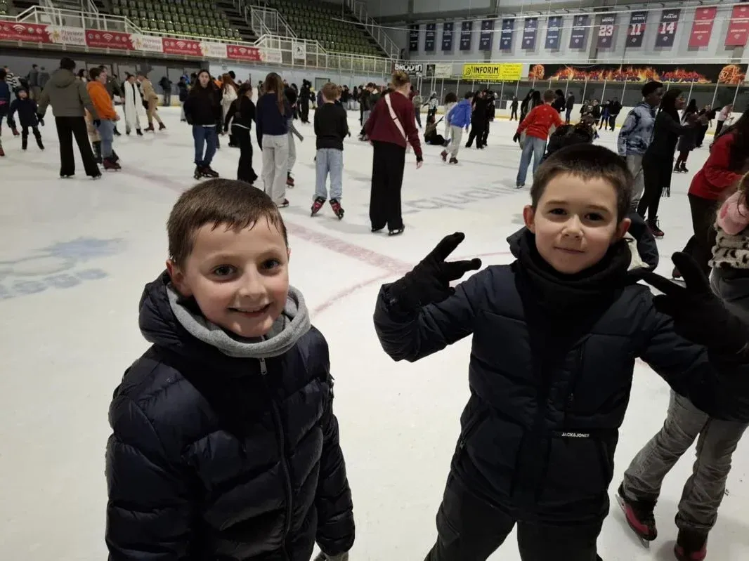 Le vendredi 19 dĂ©cembre, ce sont les Ă©lĂšves de primaire qui ont pris le bus pour se rendre Ă la patinoire de la MĂ©diacitĂ©. Ils ont profitĂ© dâune matinĂ©e sportive et conviviale, remplie de rires et de glissades.