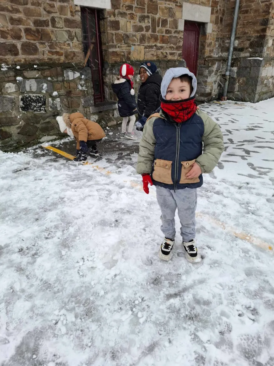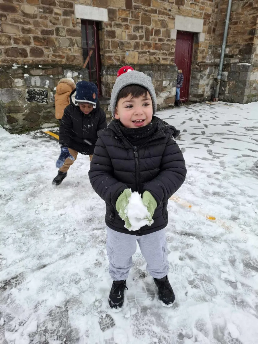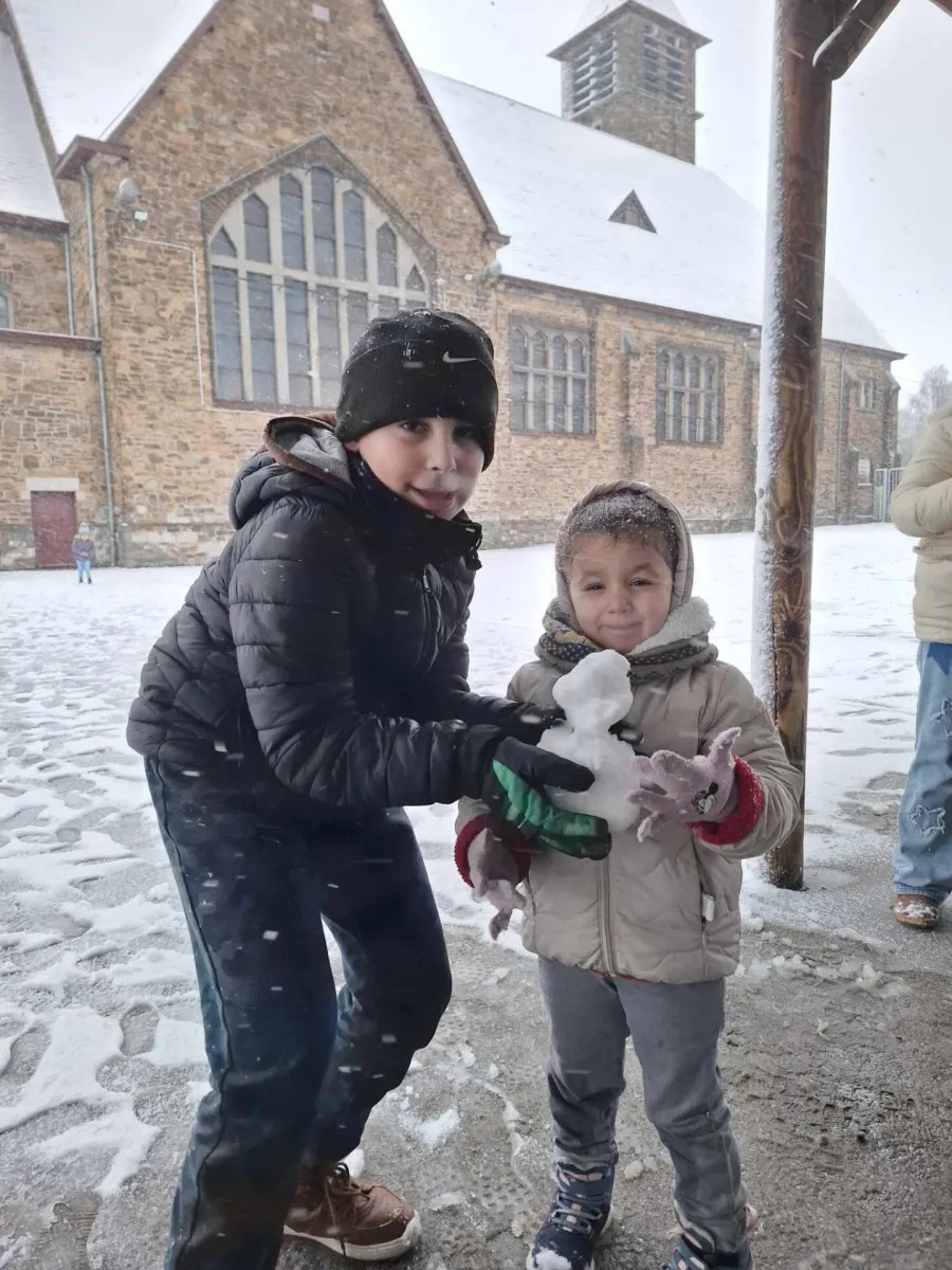 Début janvier, la cour de récréation s’est transformée en un magnifique paysage enneigé. Les élèves, ravis, ont laissé libre cours à leur joie en profitant pleinement de la neige. Au programme : la création de bonhommes de neige, des anges dessinés au sol et beaucoup de fous rires partagés.