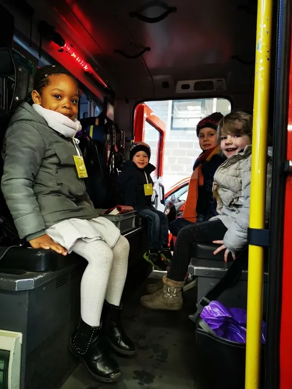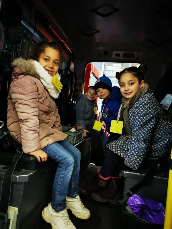 Après avoir pris le bus, tôt le matin, les enfants ont été accueillis par les pompiers.